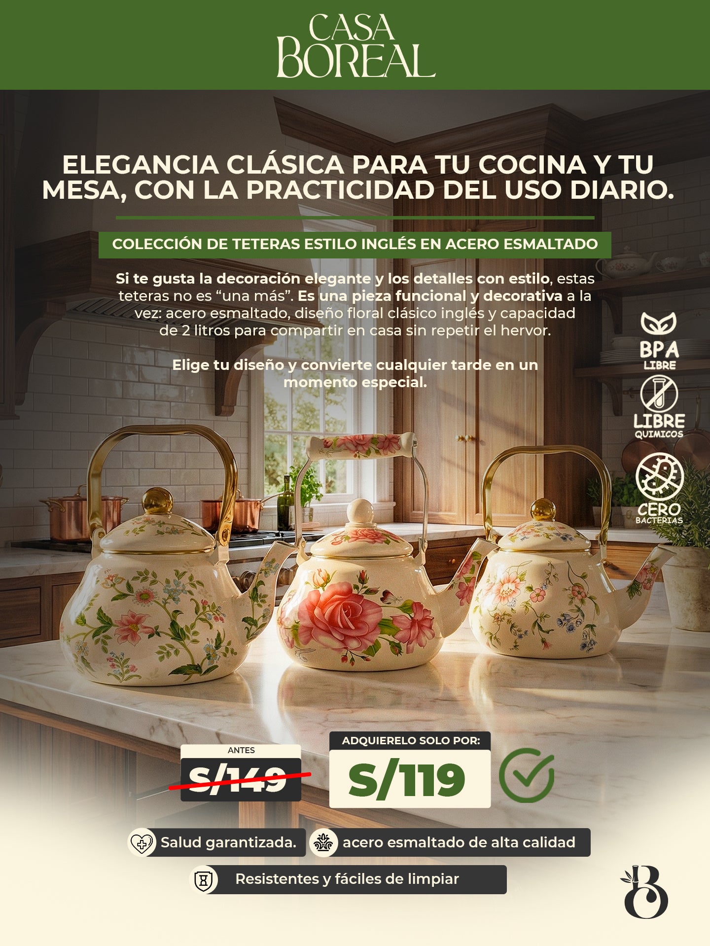 Si te importa el detalle (puesta de mesa, té de tarde, brunch, visitas), esta Tetera Estilo Inglés hace que todo luzca mejor.